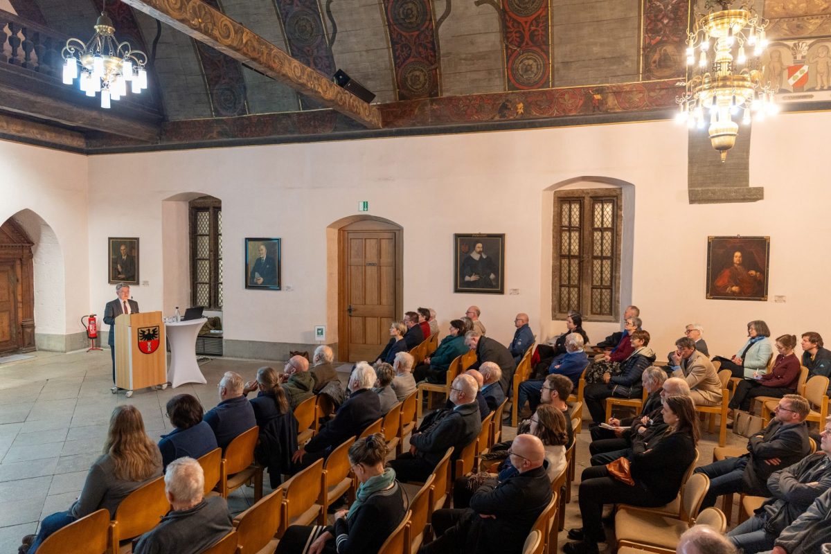 Ein besonderes Highlight war der öffentliche Abendvortrag in der historischen Rathaushalle der Stadt: Herr Professor Dr. Christian Hesse (Bern) trug zum Thema „König, Fürsten und Reich zwischen Rudolf von Habsbrug und Karl IV.“ vor und konnte zudem die interessierte Stadtgesellschaft dafür begeistern.